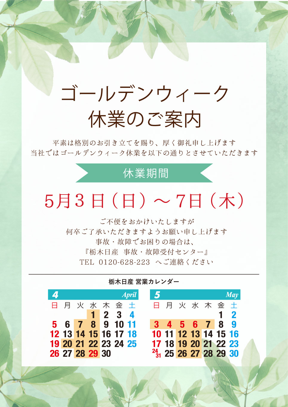 • ゴールデンウィーク休業のお知らせ(2026)